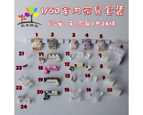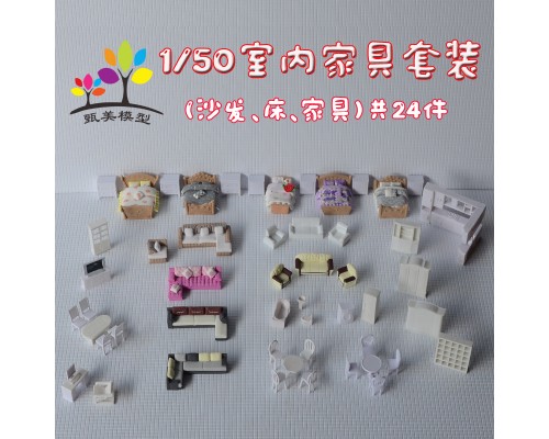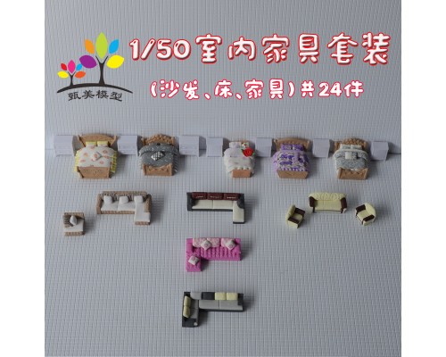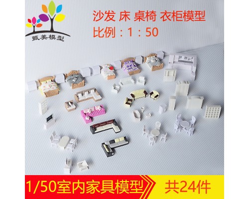 建筑模型DIY沙盤材料迷你室內家具套裝桌椅沙發床衣柜單人床1/50