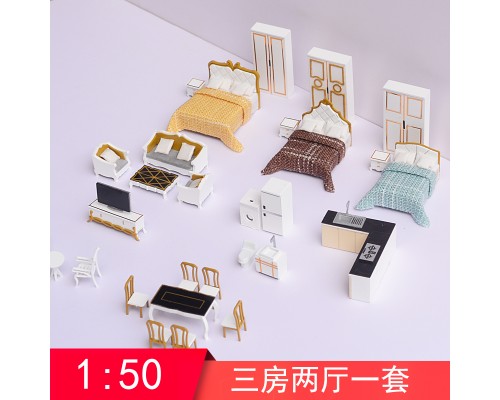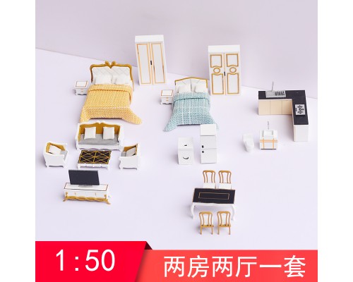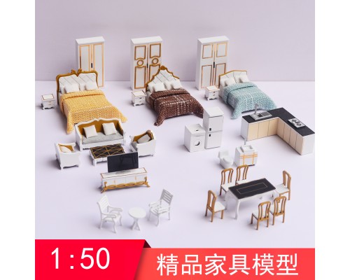 迷你室內歐式家具模型手工沙發床衣柜廚房餐桌椅建筑設計材料1/50