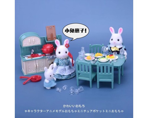 廚房+桌椅食物餐具+兔子一家 (NT344)
