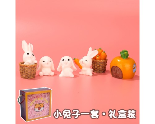 日式迷你可愛小兔子玩具微景觀擺件仿真動物模型卡通女孩公仔禮物