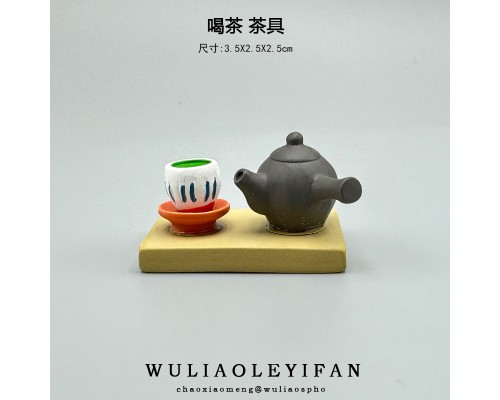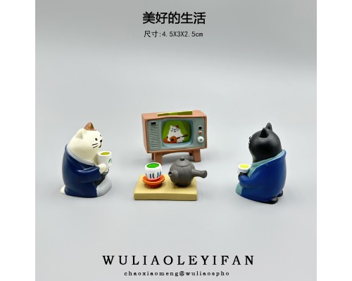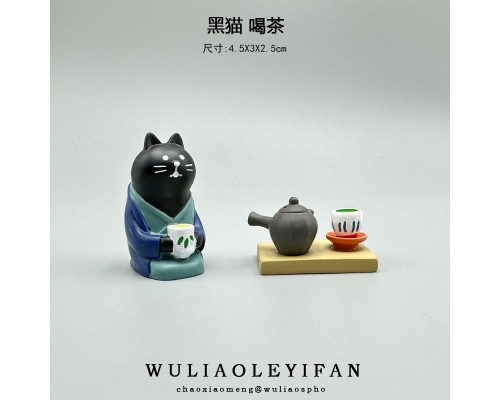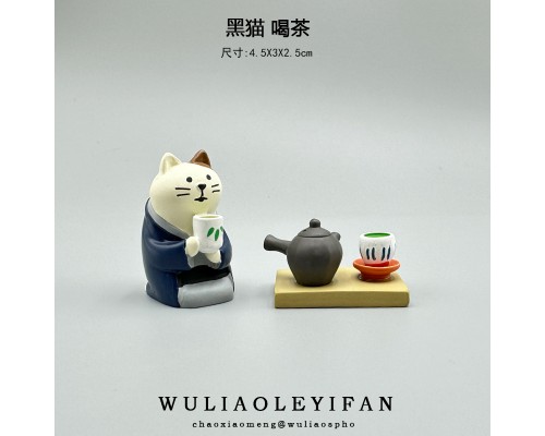 無聊了喝喝茶日式桌面擺件可愛貓咪治愈微景觀娃娃屋迷你桌面裝飾