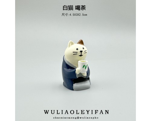 白貓喝茶+茶具 (NT125)