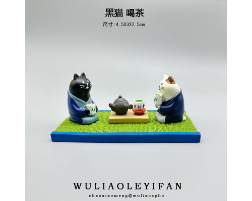黑貓喝茶+白貓喝茶+榻榻米+茶具 (NT219)