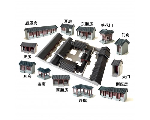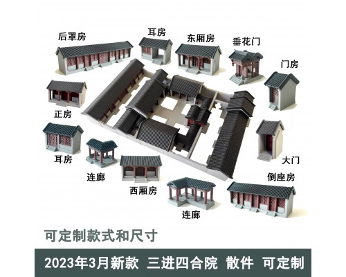 北京四合院模型新品古建筑國風造景擺件家居魚缸餐桌裝飾