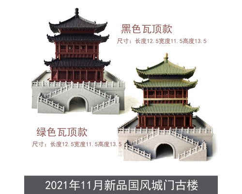 吸水石假山盆景小屋擺件魚缸微景觀造景枯山水假山擺件古樓