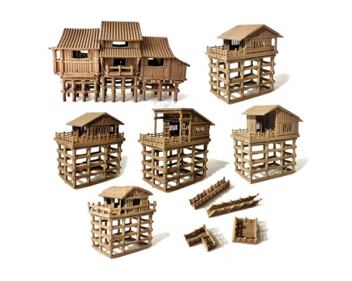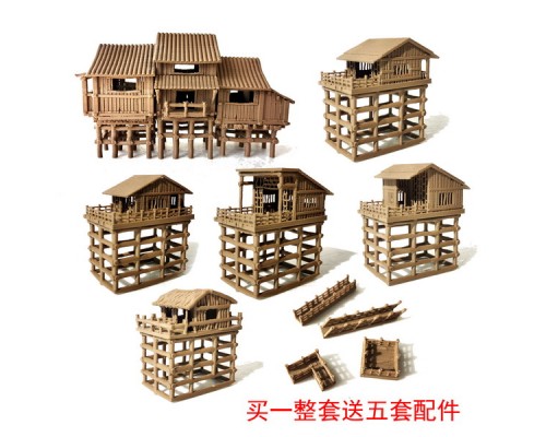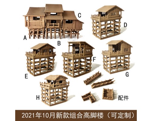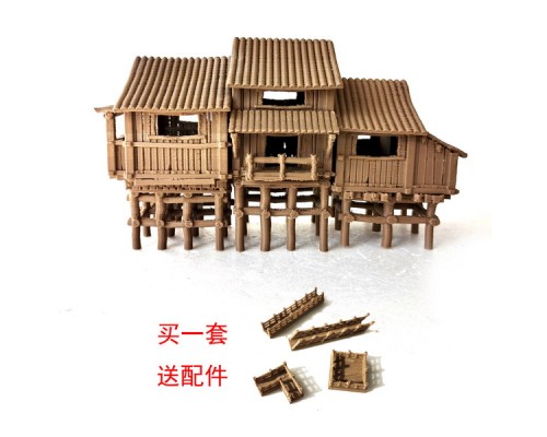 新品吸水石假山盆景擺件魚缸微景觀造景古建模型吊腳高腳樓