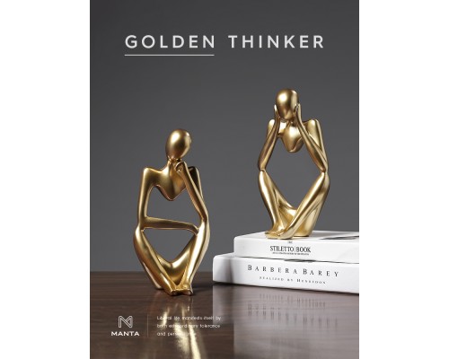 簡約創意金色思考者擺件現代家居客廳酒柜電視柜桌面人物裝飾品