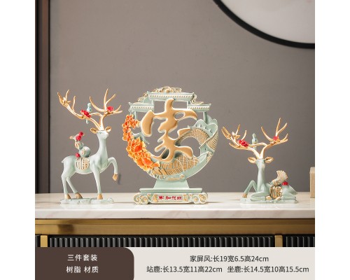 福祿百財鹿一對+家三件套【淺藍】 (NT892)