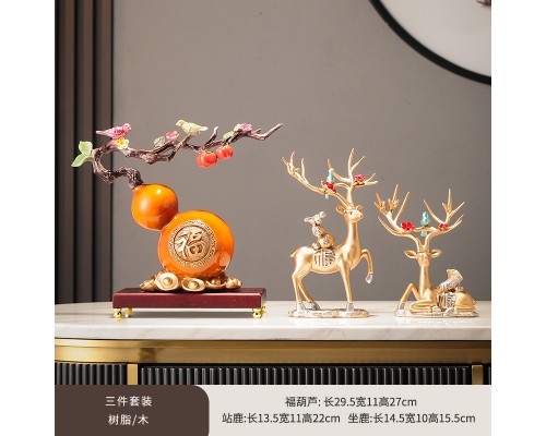 如意葫蘆擺件【橙】+福祿百財鹿一對【金】 (NT1,701)