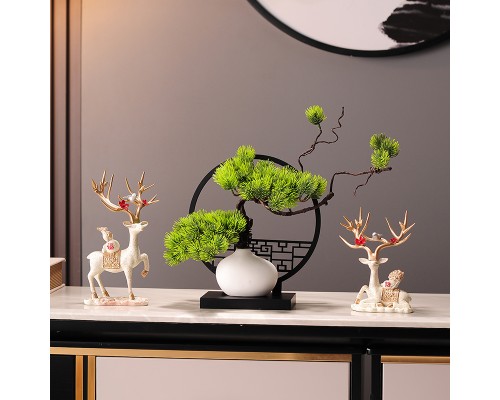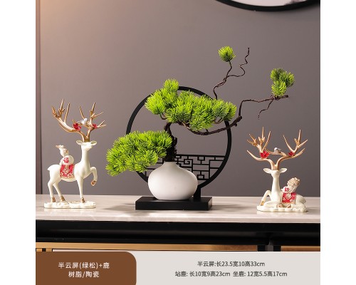 奶白色鹿+迎客松屏風 (NT1,044)