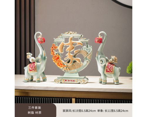 如意葫蘆擺件【淺藍】+財福柿子象一對【淺藍】 (NT2,224)