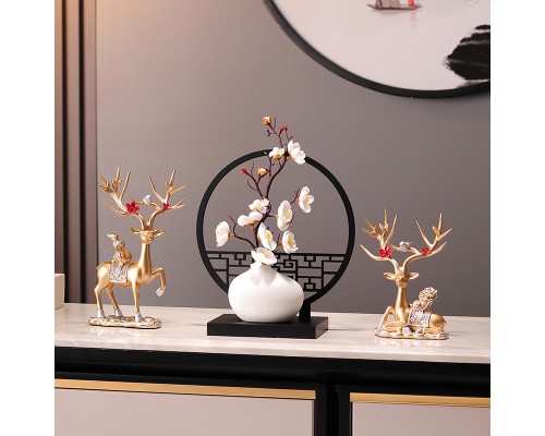 福祿百財鹿一對+家三件套【金色】 (NT892)