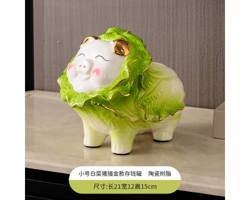 小號白菜豬描金款存錢罐【可取】 (NT712)
