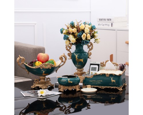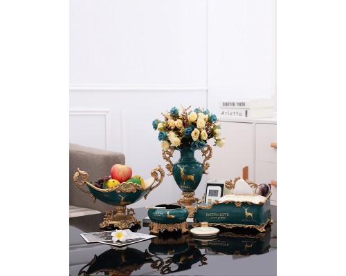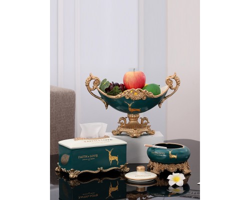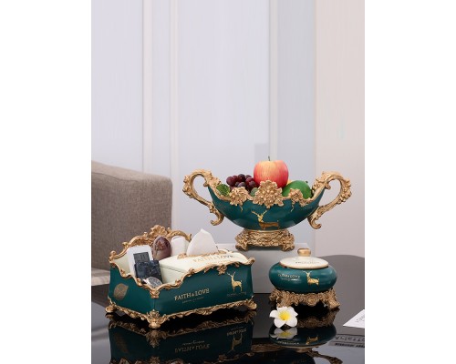 綠米單紙巾盒果盤三件套 送牙簽盒+燙金墊 (NT2,280)