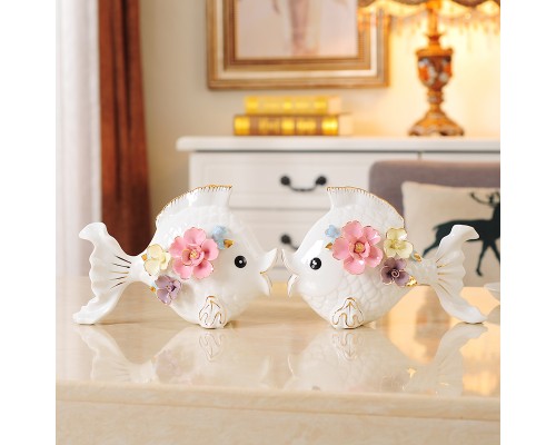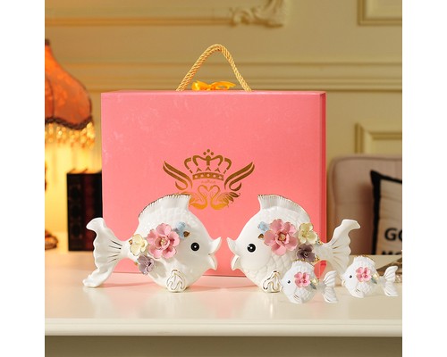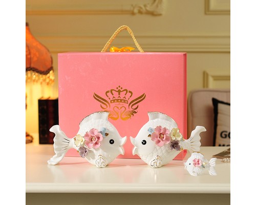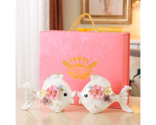家居創意小擺件酒柜客廳接吻魚高檔裝飾品送閨蜜朋友新婚結婚禮物
