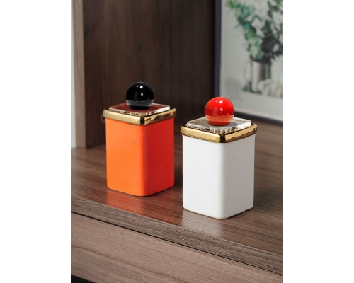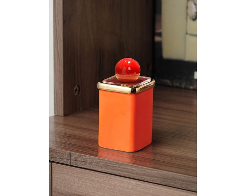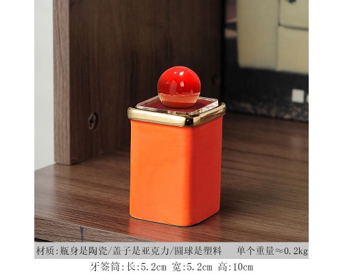 橙方描金牙簽筒+紅球 (NT164)