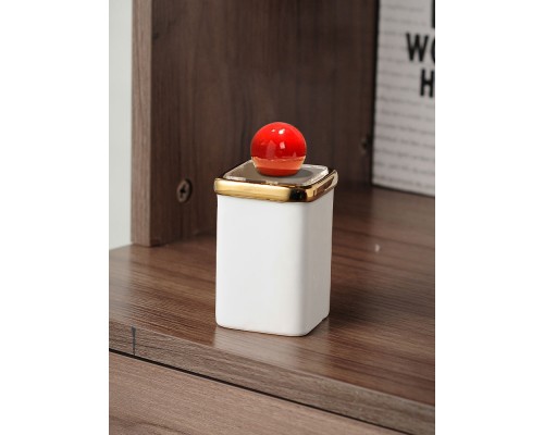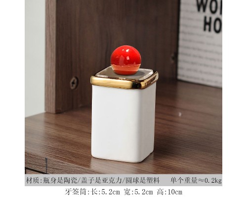 白方描金牙簽筒+紅球 (NT164)