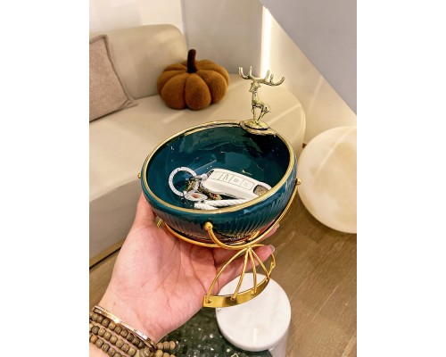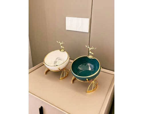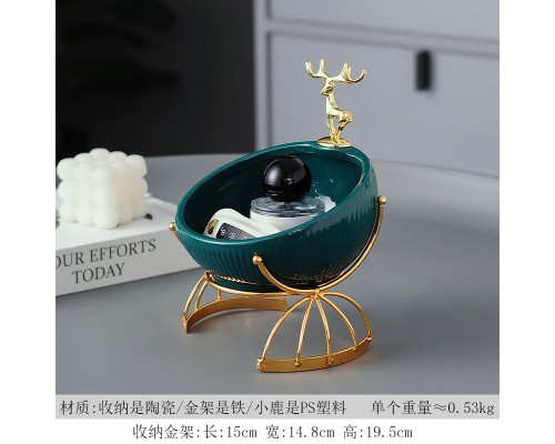 輕奢綠描金陶瓷收納+金架 (NT582)