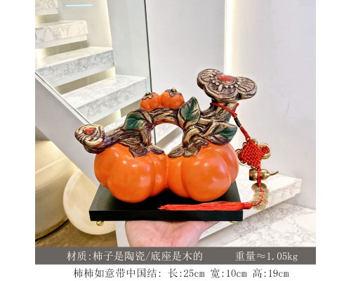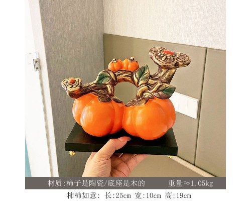 輕奢柿柿如意柿子擺件電視柜家居裝飾品喬遷之喜搬家入宅布置用品