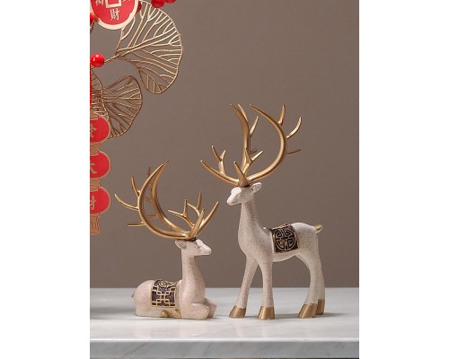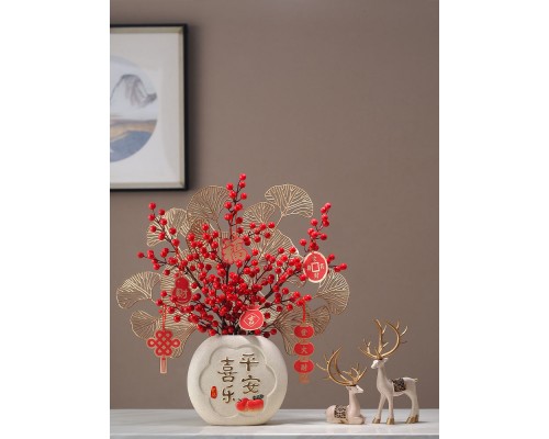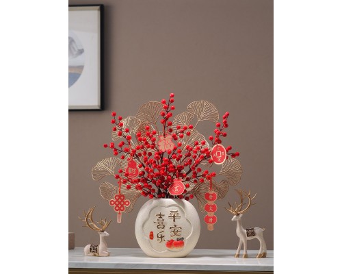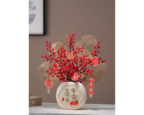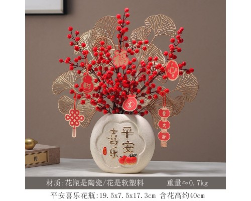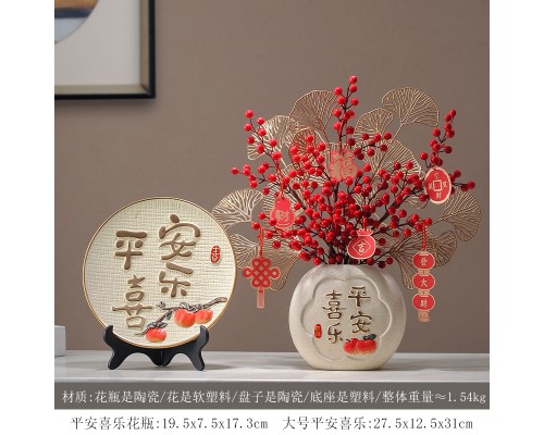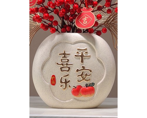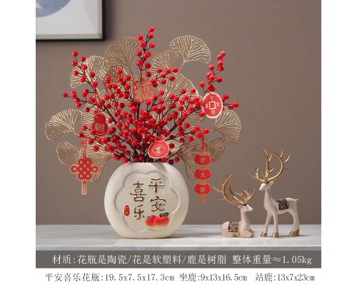 米色平安喜樂花瓶+花+福鹿一對 (NT1,028)