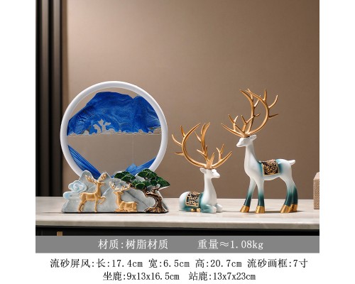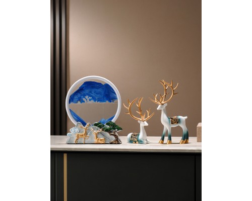 福鹿山景流沙畫+漸變藍鹿一對 (NT1,028)