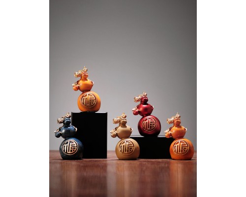 創意葫蘆擺件客廳辦公室玄關好寓意裝飾品輕奢新中式喬遷新居禮物