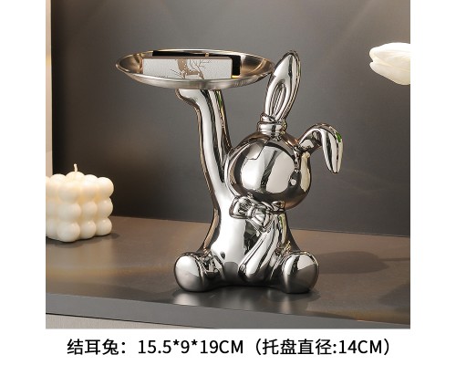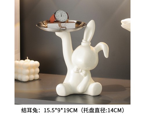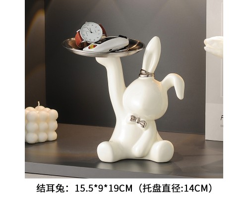 【描銀 時鐘】結耳兔+白托盤 (NT982)