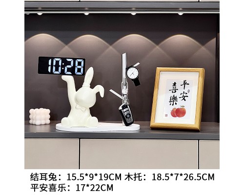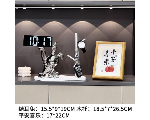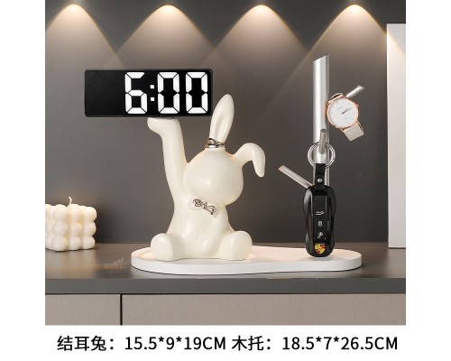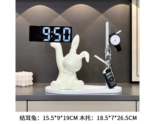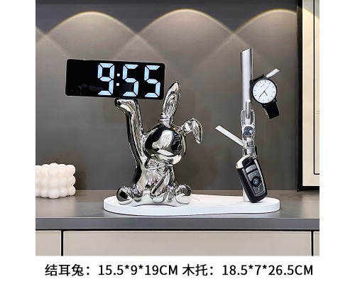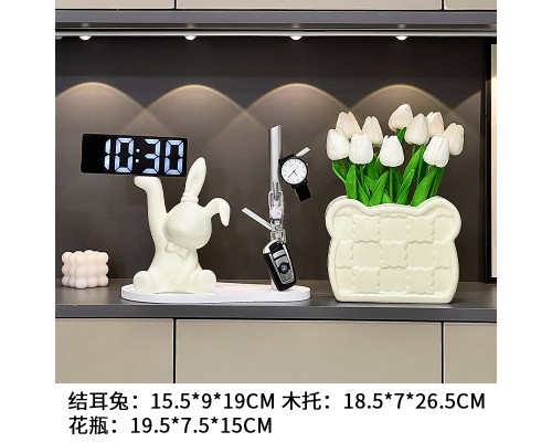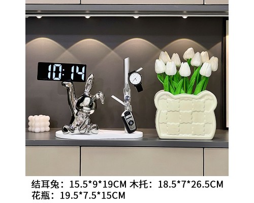 【描銀 時鐘】結耳兔+白托盤+花瓶配花 (NT1,635)