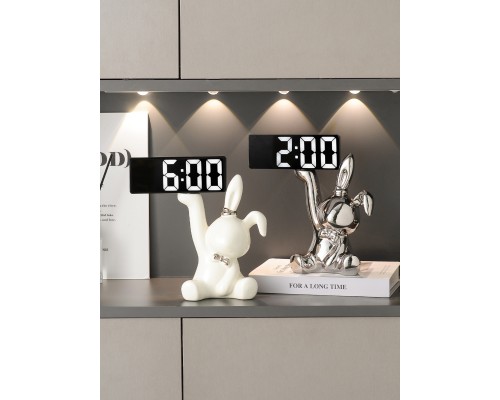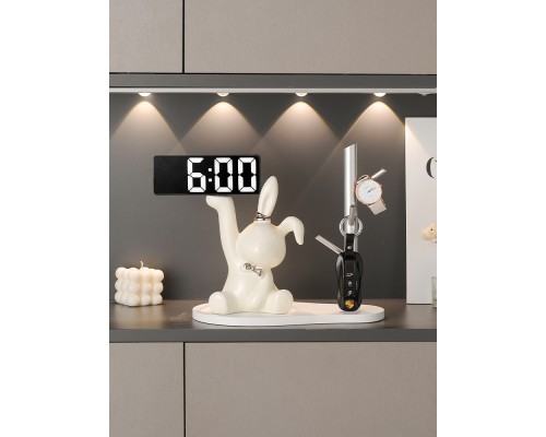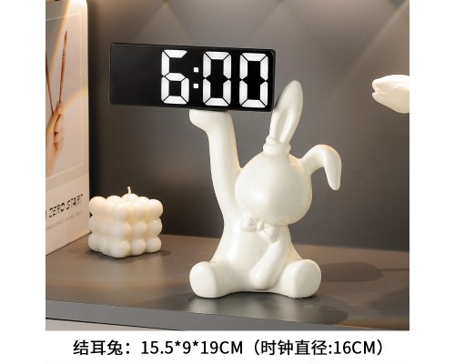 【全銀 時鐘】結耳兔+白托盤 (NT982)