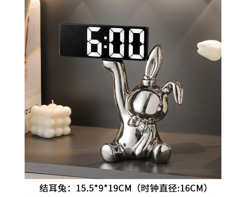 【全銀 時鐘】結耳兔+白托盤+花瓶配花 (NT1,635)