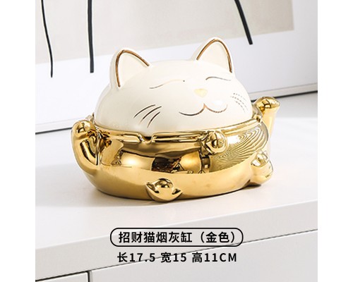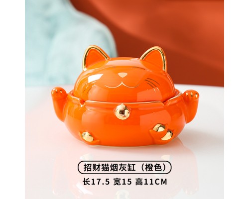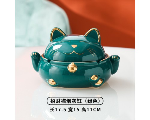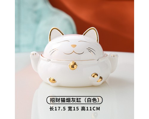 招財貓煙灰缸輕奢簡約家用客廳高端大氣上檔次可愛灰缸帶蓋高級感
