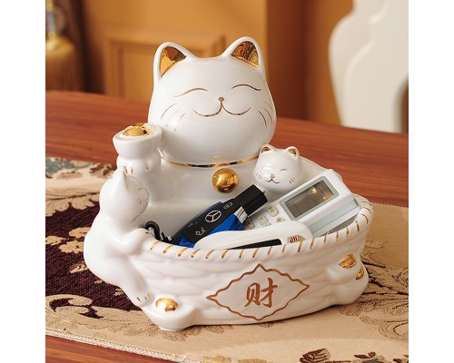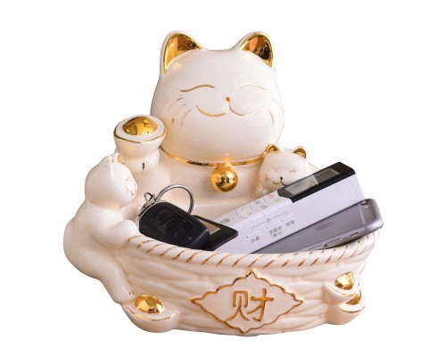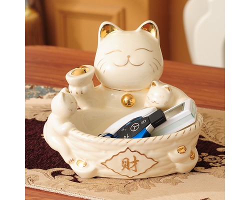 放鑰匙的收納盒玄關進門口家用雜物鑰匙盤創意歐式招財貓陶瓷擺件