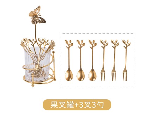 蝴蝶罐+3樹葉叉+3樹葉勺 (NT432)