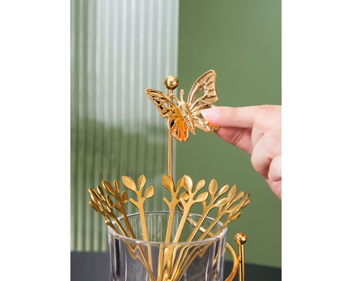 蝴蝶罐+6樹葉勺 (NT432)
