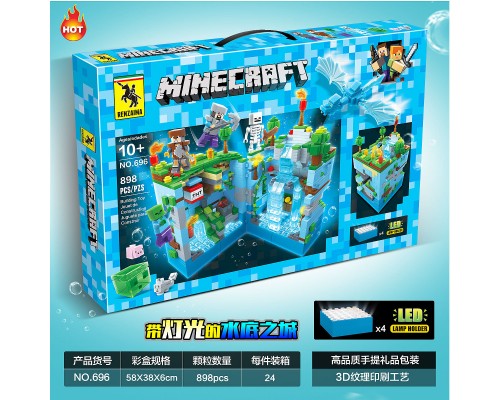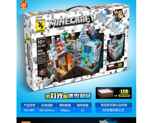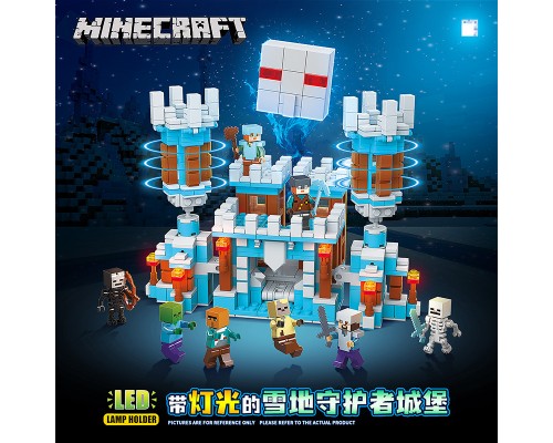 我的世界雪地守護者城堡積木拼裝玩具帶燈光跨境新品兼容樂高