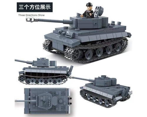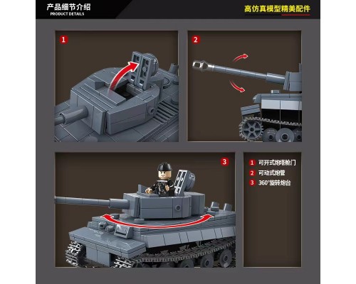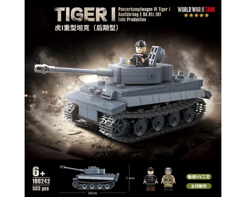 中國積木虎式重型坦克履帶式100242二戰軍事系列人仔男孩拼裝玩具