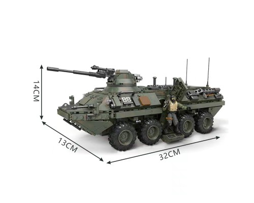 坦克八輪重型裝甲車運載車拼裝中國積木拼裝高難度男孩子軍事系列