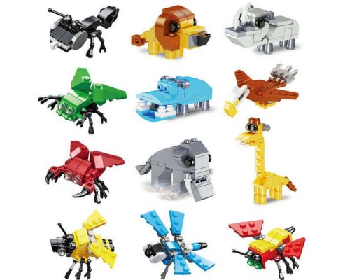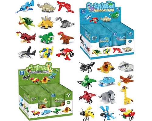 昆蟲動物鯊魚小顆粒恐龍積木盲盒盲袋益智拼裝玩具禮品
