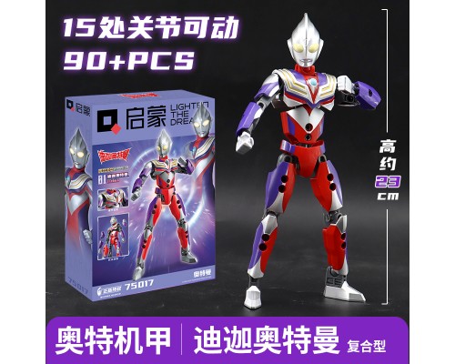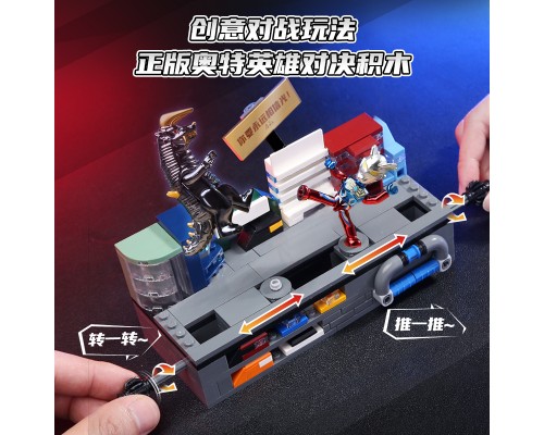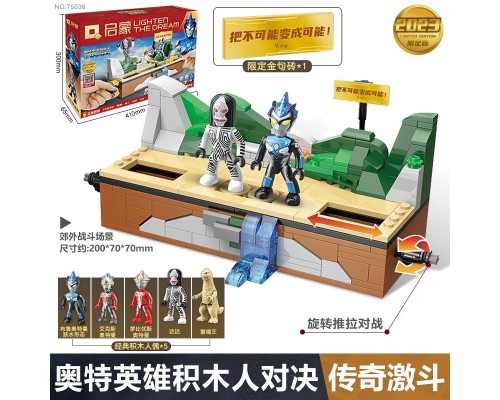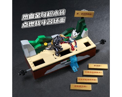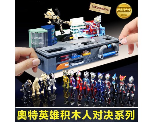 中國積木奧特曼英雄對決擂臺積木人迪迦賽羅男孩子拼裝玩具。