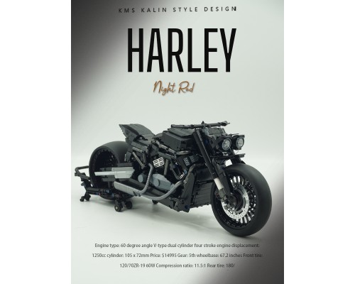 適用樂高1:5大型哈雷夜路德摩托車高難度男生禮物拼裝積木模型