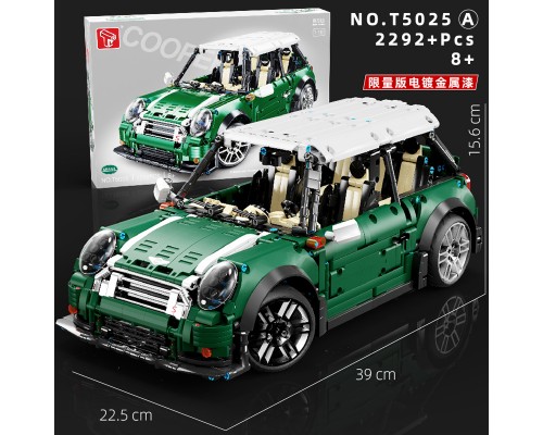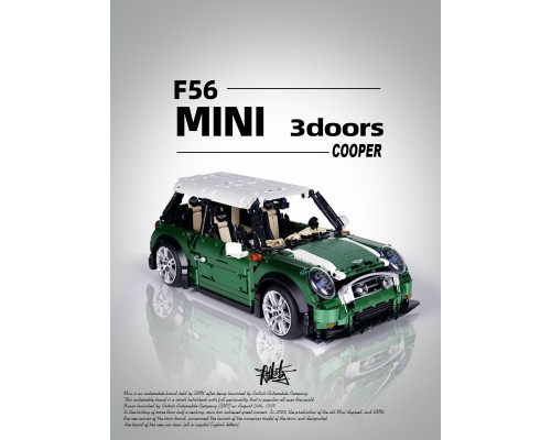 中國積木1:10復古mini COOPER遙控汽車高難度成年拼裝玩具模型
