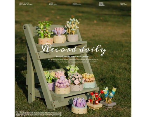 中國積木花束迷你多肉盆栽永生花仿真擺件女孩小顆粒拼裝積木禮物