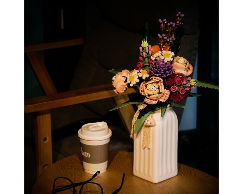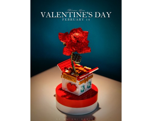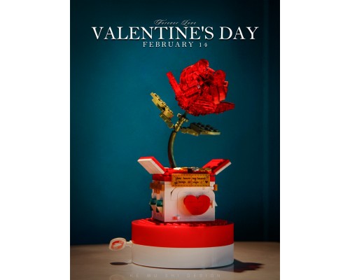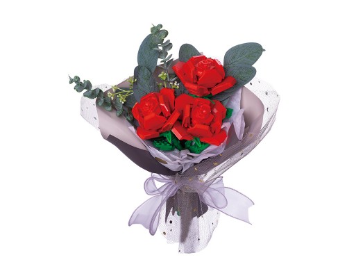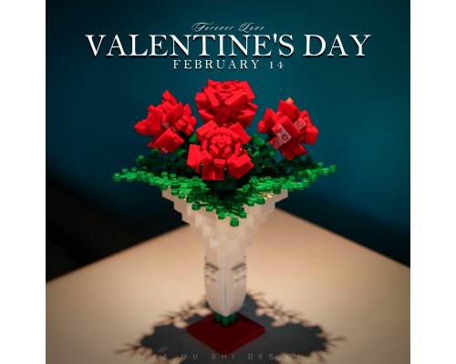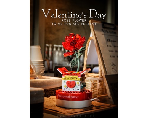 中國積木玫瑰花情人節禮物表白女孩求婚佳奇八音盒拼裝積木玩具
