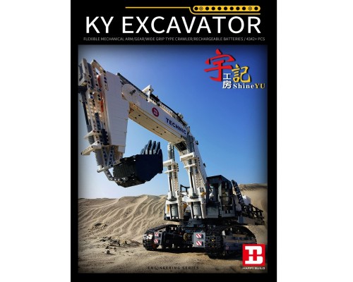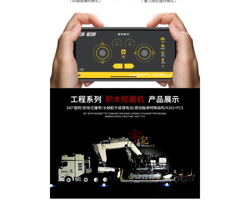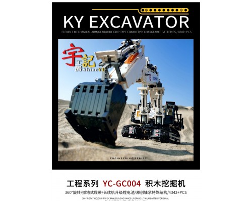 中國積木大型挖掘機工程香港宇記MOC高難度遙控拼裝積木玩具模型