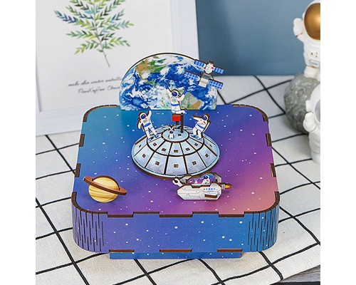 同趣航天樂章八音盒長征二號diy火箭飛機玩具空間站音樂盒禮品