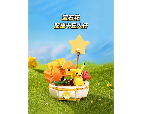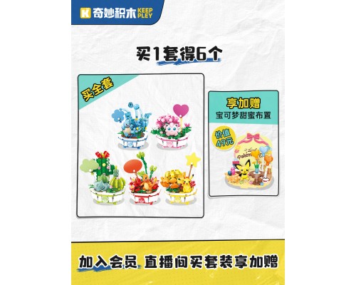 奇妙積木Keeppley寶可夢多肉盆栽玩具皮卡丘模型