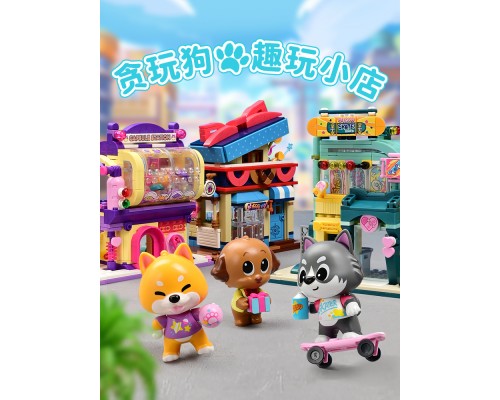 奇妙積木Keeppley萌趣街景拼裝玩具貪玩狗模型萌寵創意擺件禮物
