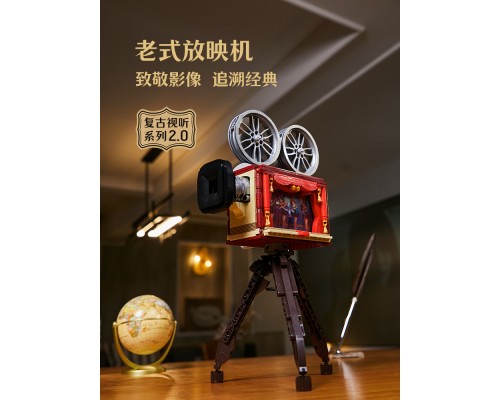 【拼奇積木】拼奇懷舊復古放映機益智拼搭辦公室擺件積木玩具