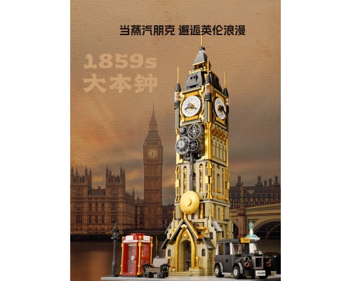 【現貨首發】拼奇蒸汽朋克鐘樓公園大型益智拼搭桌面擺件積木玩具