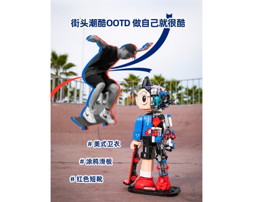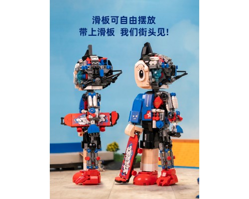 【拼奇積木】拼奇鐵臂阿童木滑板小子益智拼搭潮流積木擺件玩具